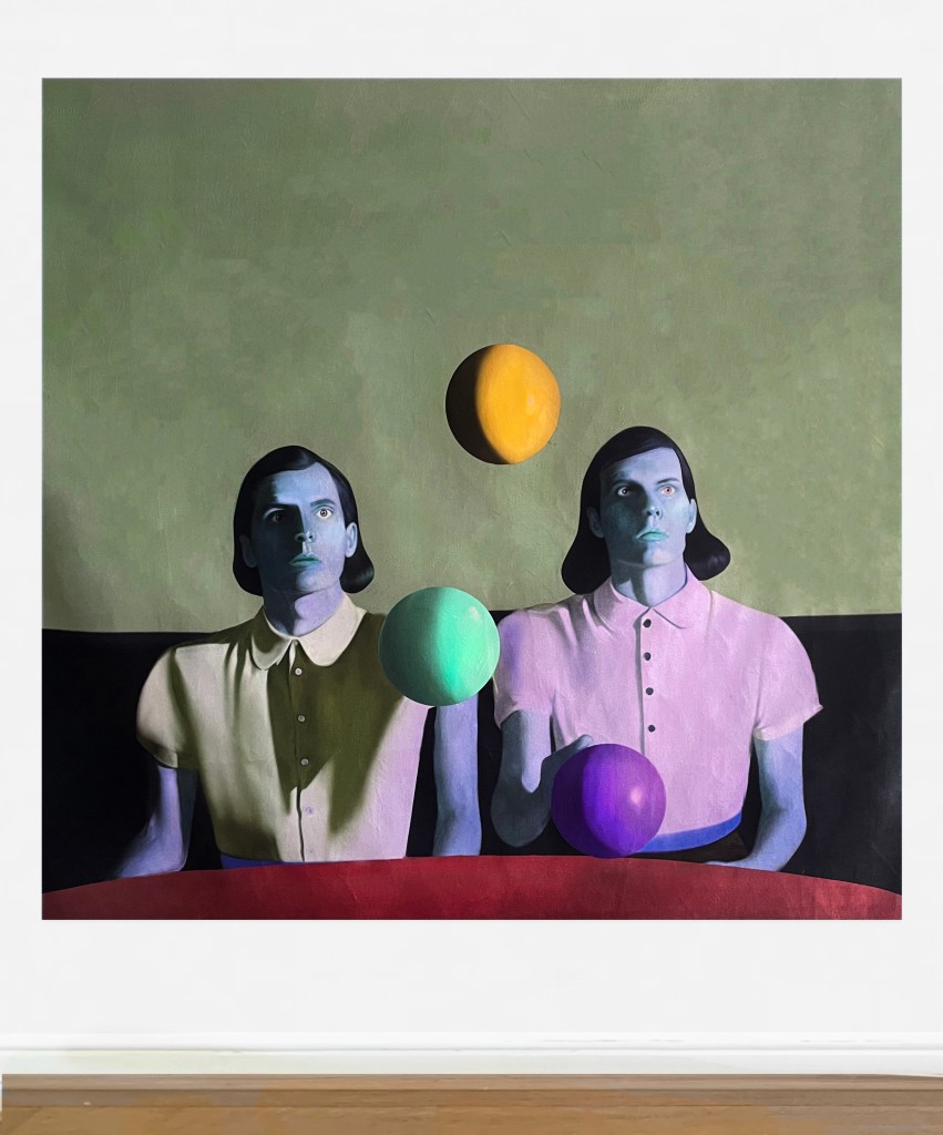 The choice of shimmer velvet emphasises the duality of the relationship, due to its lustre and the weave allows for a work to exist as a perfectly smooth surface and as a token of the marks made by hand, emphasising the ambiguity embedded in the nature of things.